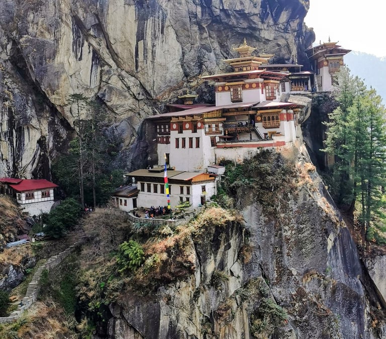 Embark on a hike to Taktsang Monastery (Tiger’s Nest), Bhutan's most iconic landmark perched dramatically on a cliffside. The hike offers stunning views and an glimpse into Bhutan’s spiritual heritage.