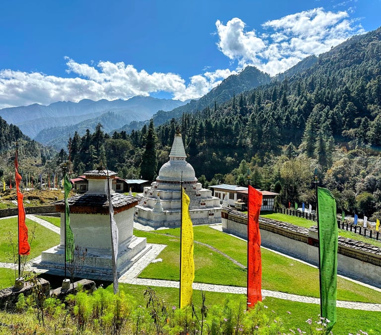 Embark on a scenic hike to Khamsum Yulley Namgyal Chorten, a beautiful hilltop temple overlooking the Punakha Valley.
